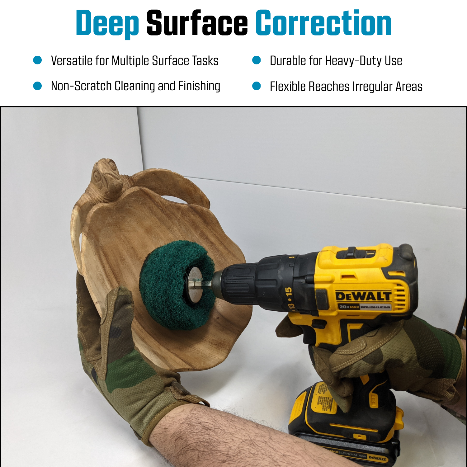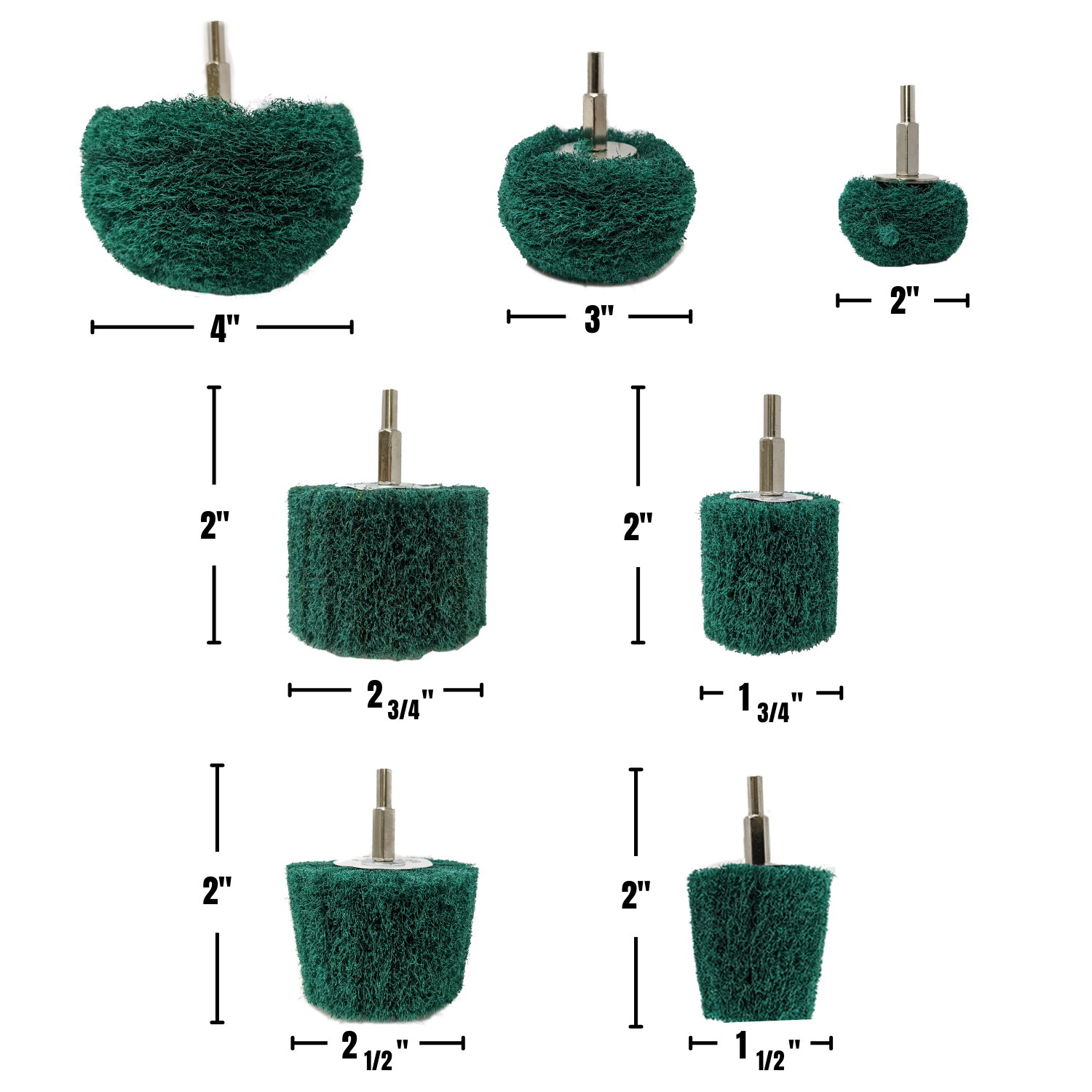 7pk Non Woven Abrasive Drill Buffing Attachment Set, Green, Coarse