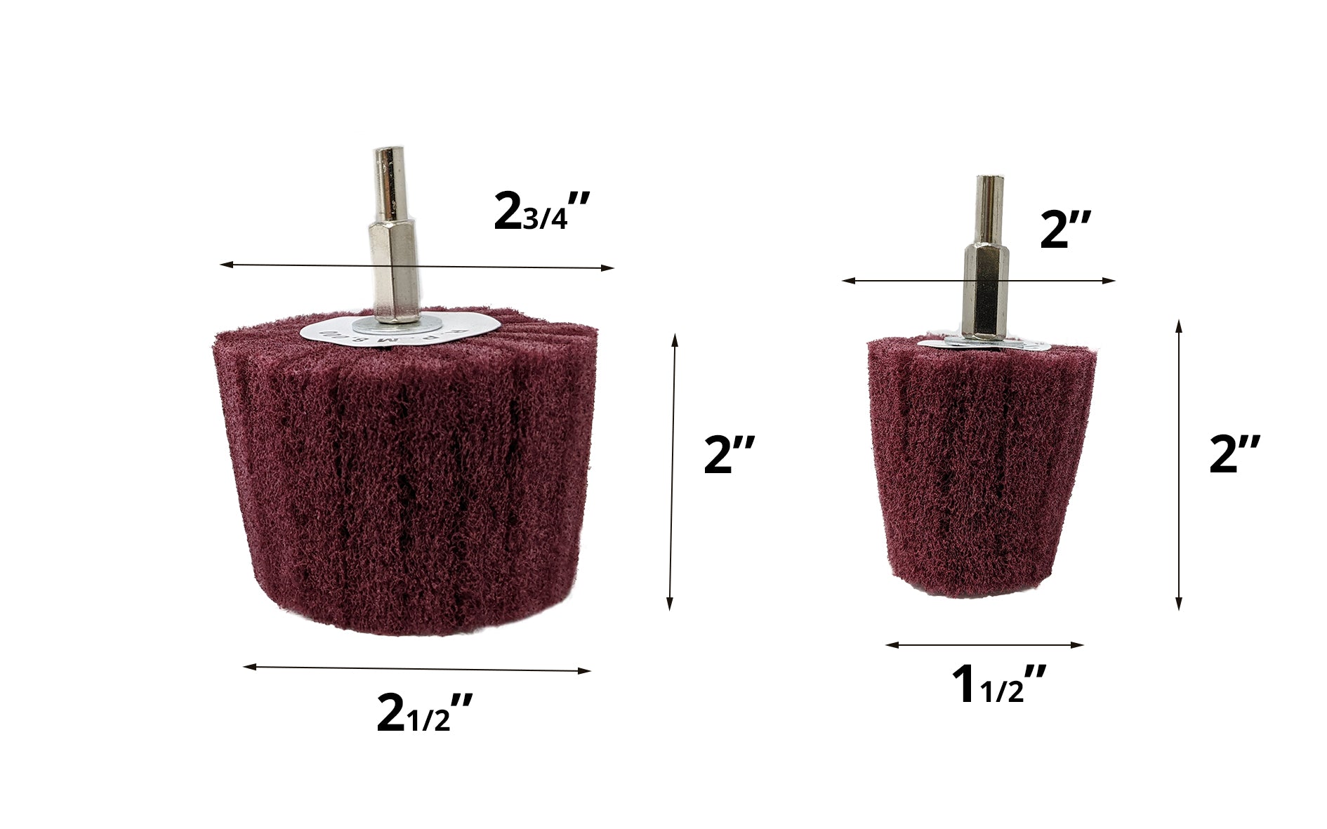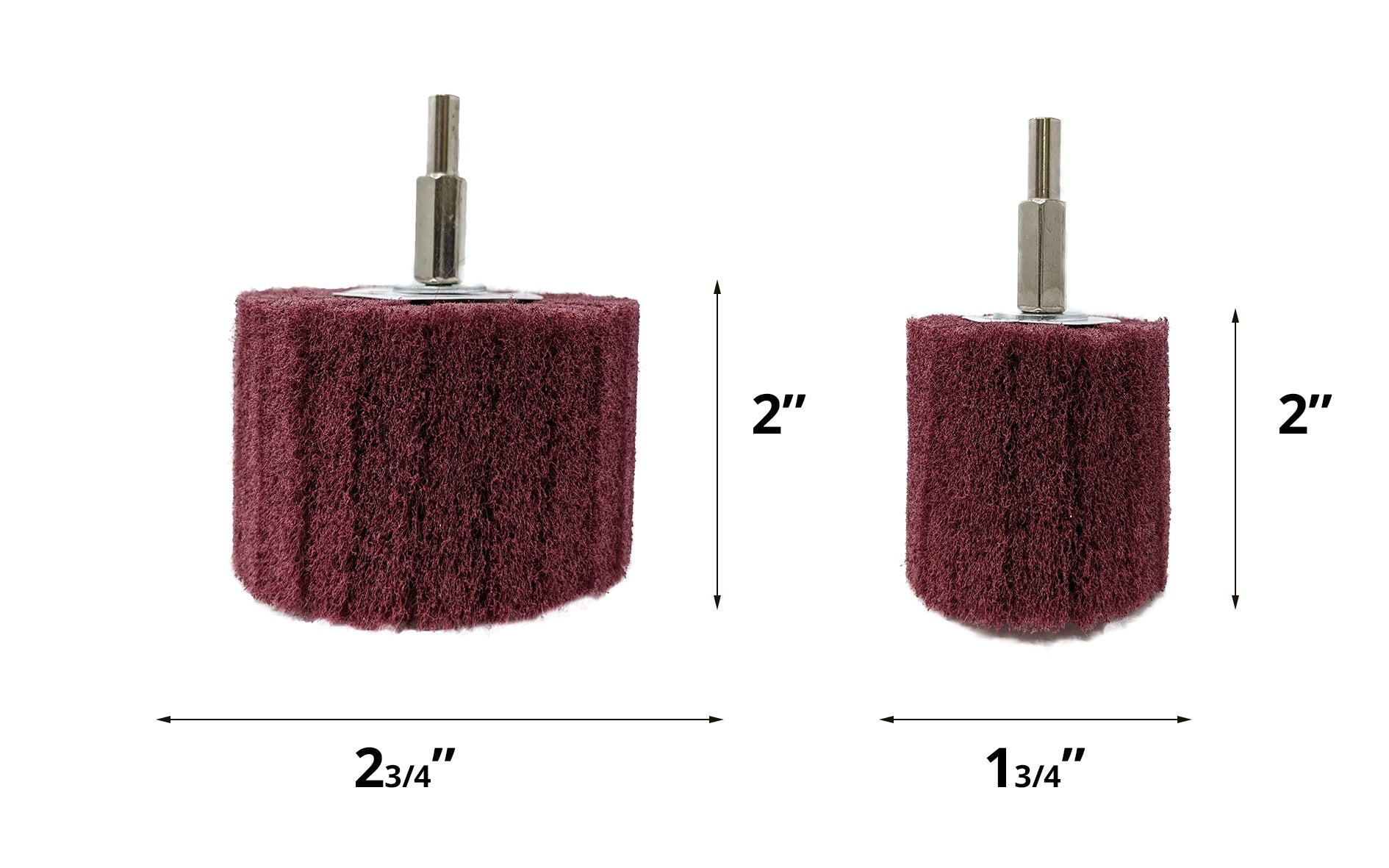 In addition to this, Each attachment comes mounted on a universal 1/4 inch shank which can fit any drill, drill press or die grinder. which makes it a very practical, versatile and portable solution for all your surface preparation needs in remote or hard to reach areas.