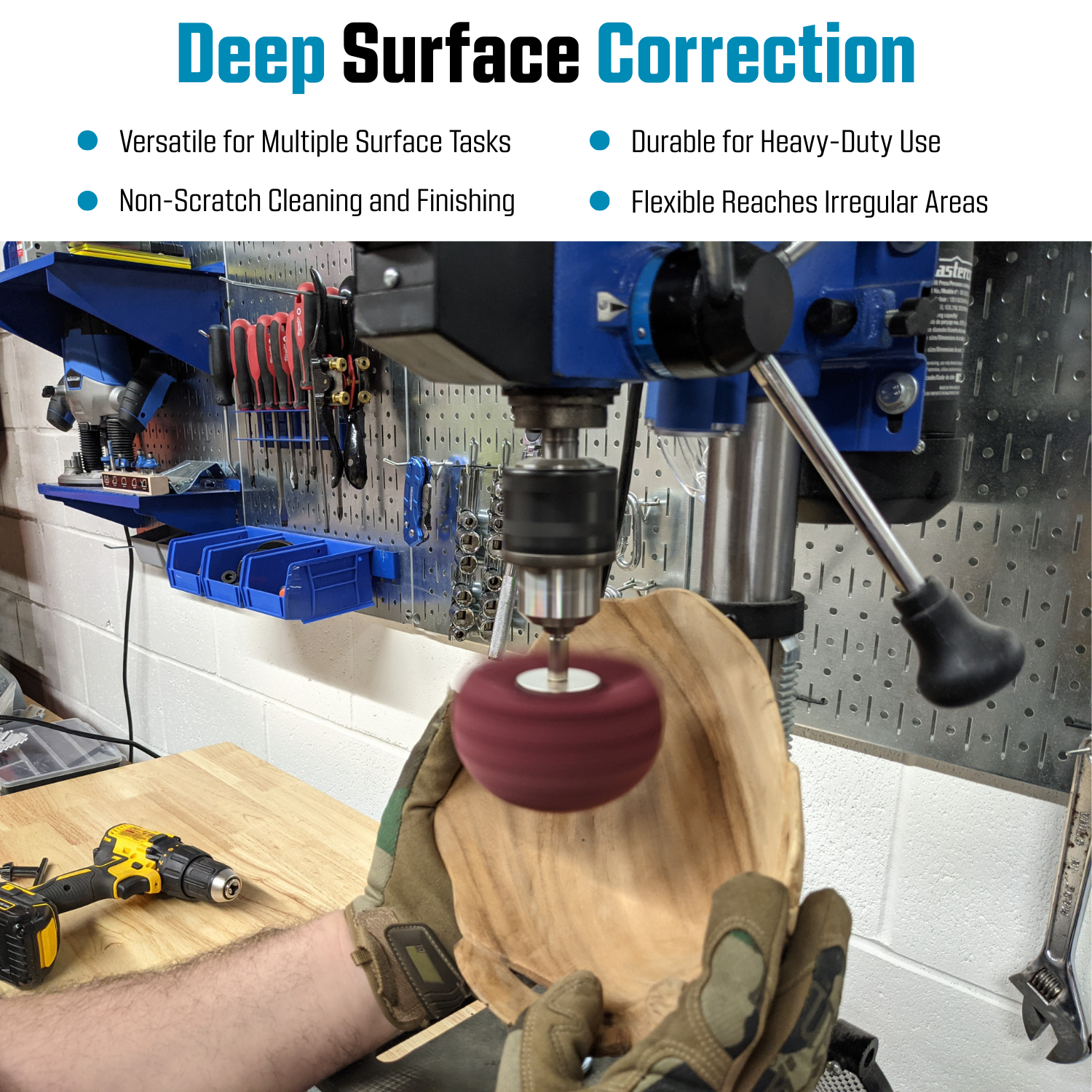 7pk Non Woven Abrasive Drill Buffing Attachment Set, Red, Medium