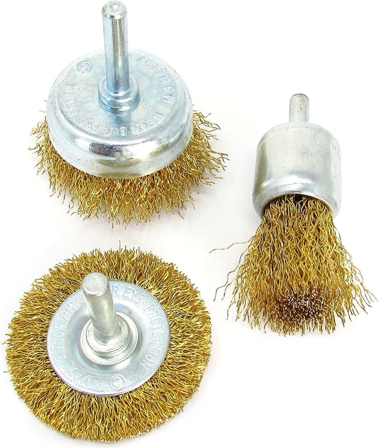 This Kit includes 2" Wire wheel with mounted Hex Shank 1" x 1" Wire Brush with mounted Hex Shank 2 " Wire cup with mounted 1/4 inch Shank