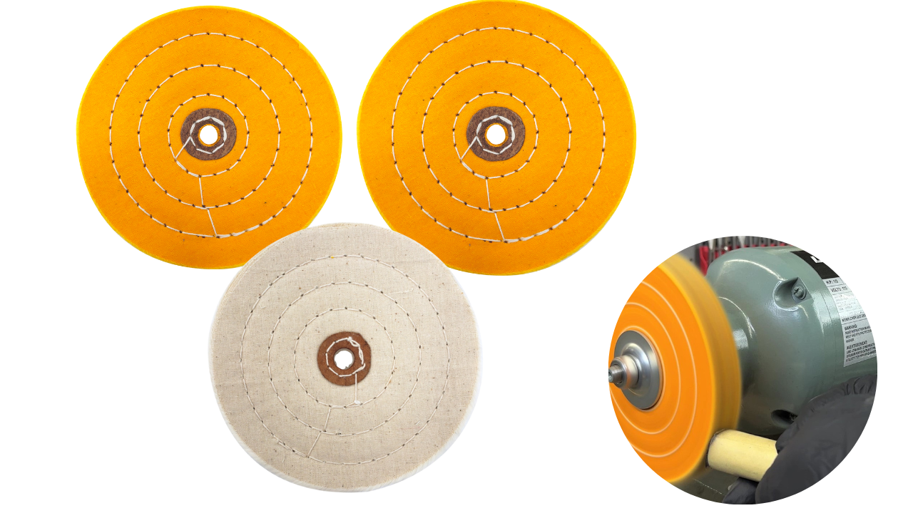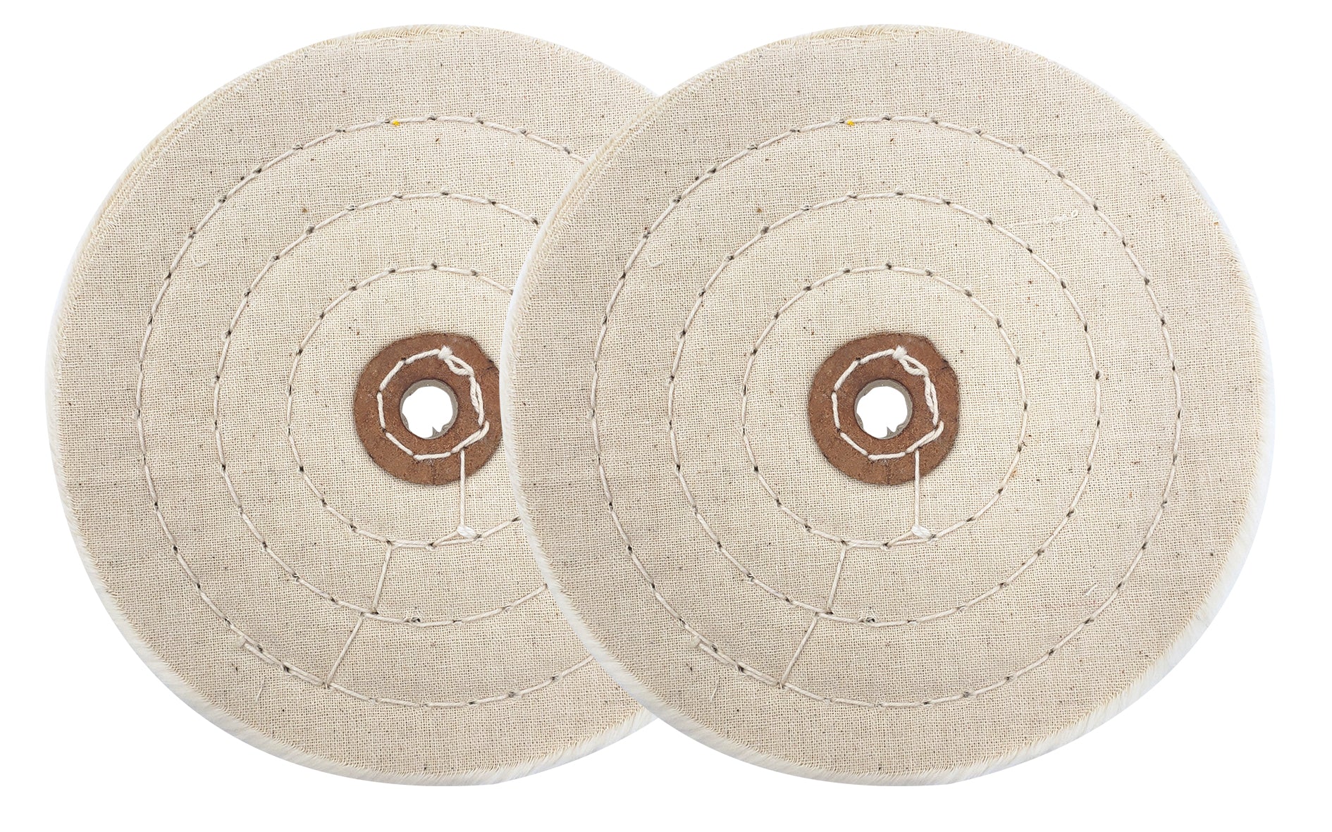 They are made of 100% cotton with a high thread count, engineered to be a softer and more flexible buffing wheel, ideal for the final buffing stages, stacked in 70 ply (about 1 inch thick). Concentric sewing adds firmness without sacrificing flexibility and Aggressive cutting action.