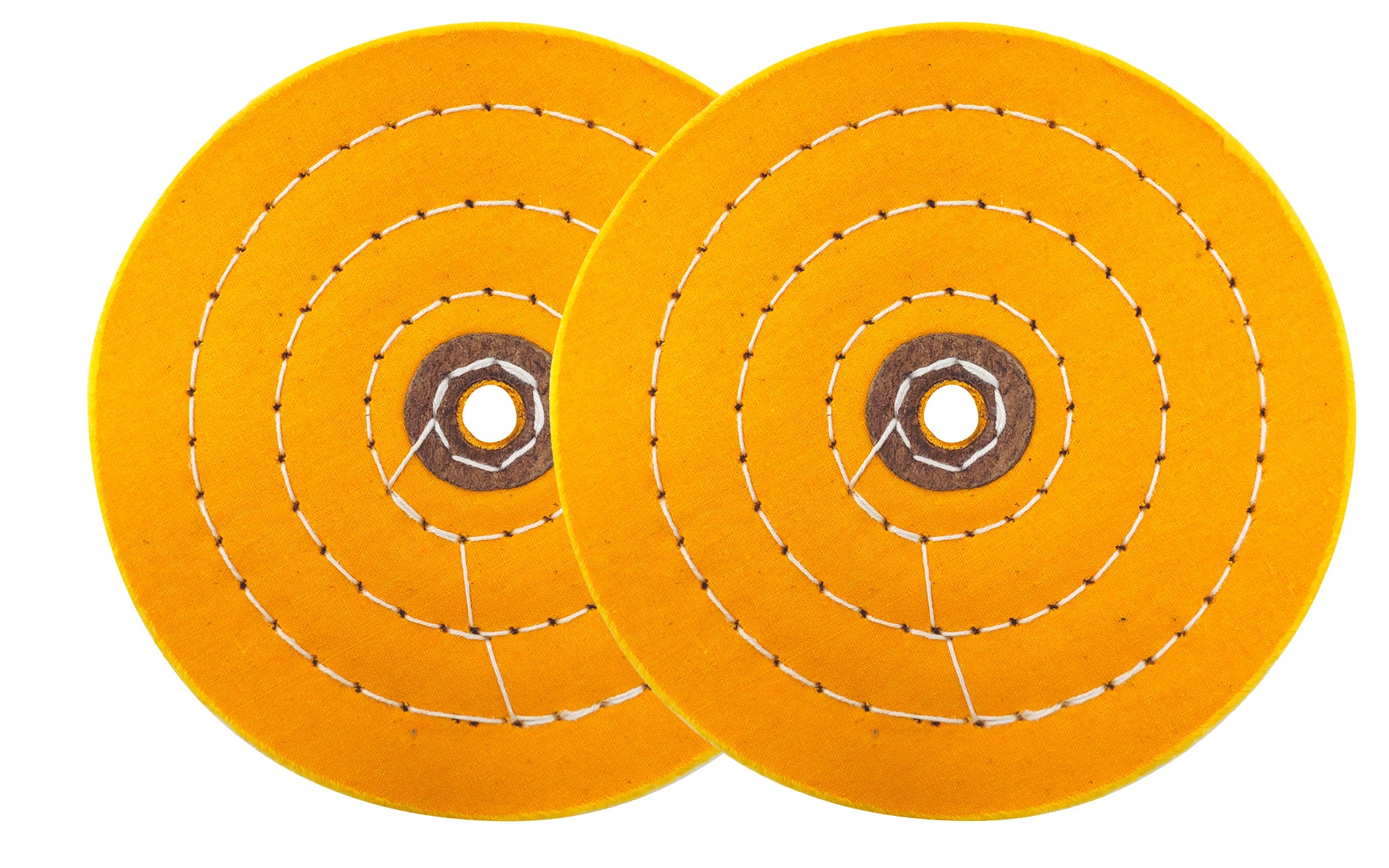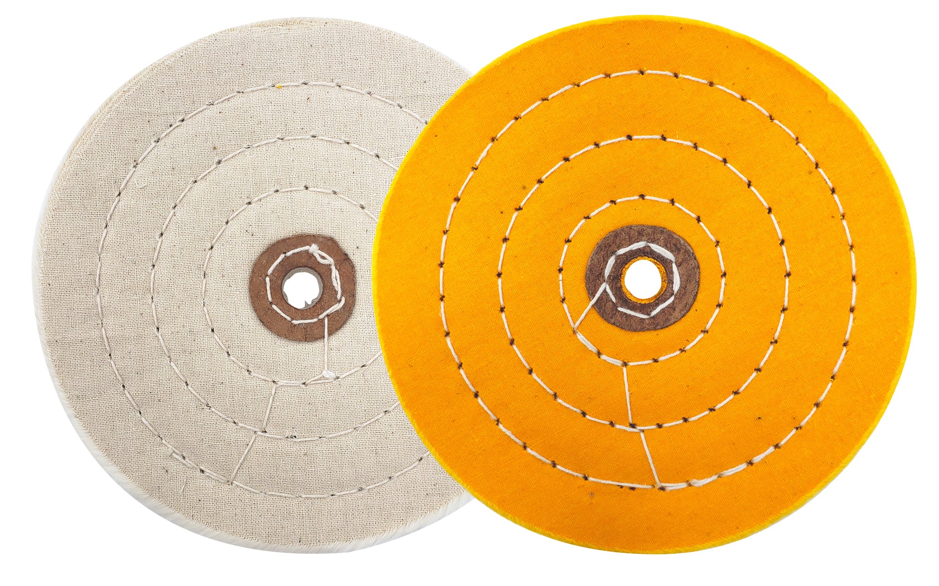 Made of 100% cotton with a higher thread count to create a firmer, more dense buffing wheel that is ideal for the first buffing stages or cuts, stacked in 55 ply (about 7/8 inch thick). Concentric sewing adds firmness without sacrificing flexibility and Aggressive cutting action