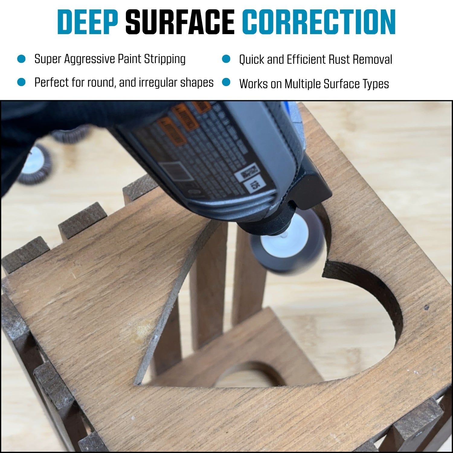 These flaps work well with wood, plastic and metal surfaces for cleaning and paint stripping and deburring.