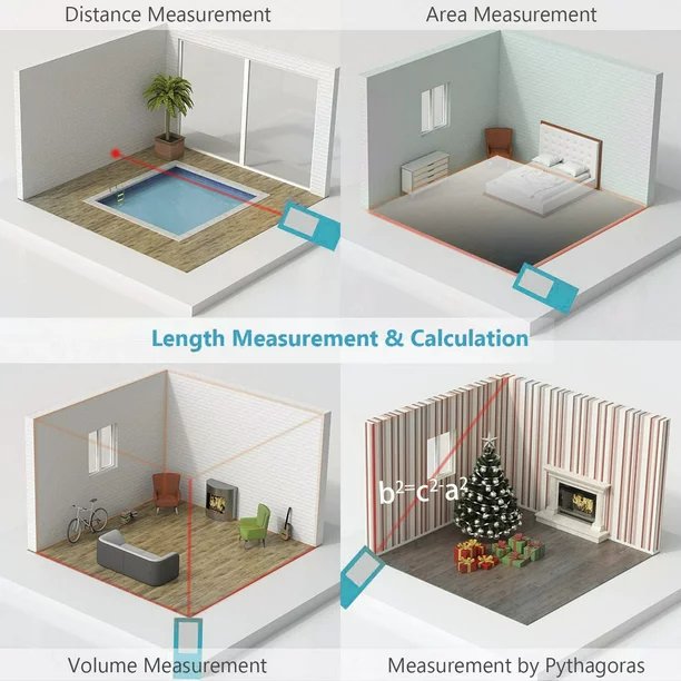 With multiple measurement modes like distance, volume, area measurement, continuous measurement and measurement by Pythagoras, the laser level is ideal for home, construction and industries, especially in large areas such as rooms, apartments, buildings, real estates, factories, warehouses, etc.