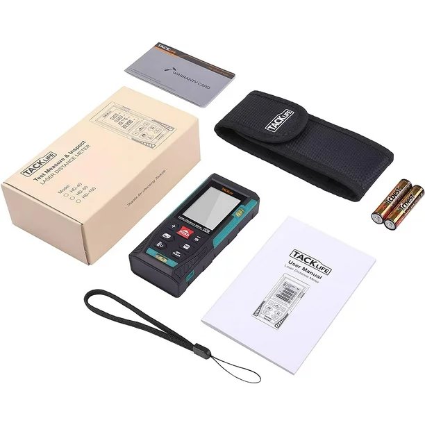This package includes Tacklife HD60 Laser Measuring Device 196Ft; AAA Batteries; User Manual; Portable Bag"