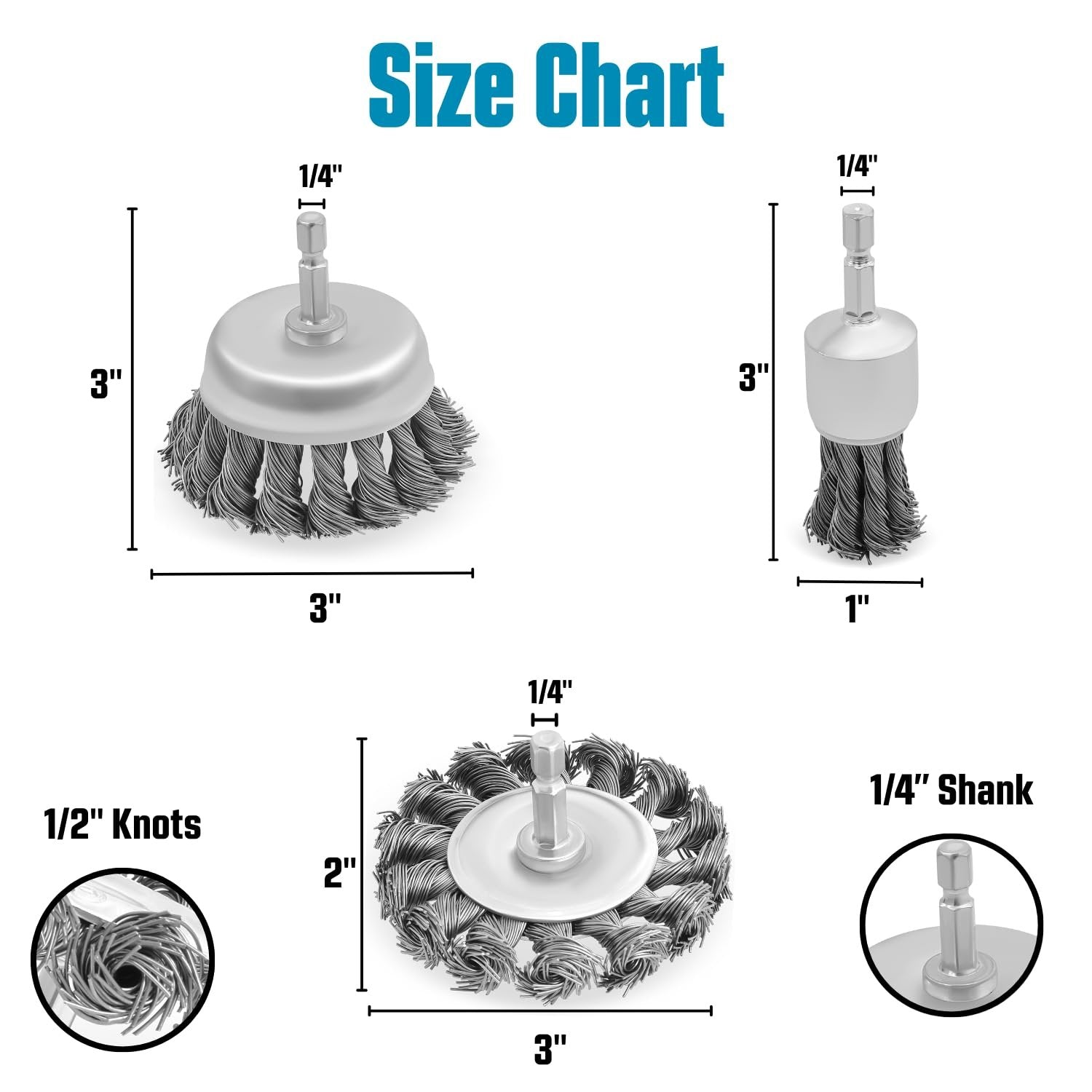 • Industrial-Grade Carbon Steel Wire Construction: Made of high-tensile twisted carbon steel wire for aggressive material removal. Ideal for removing rust, oxidation, paint, spatter, and scaling on metal substrates. Includes one 3-inch knotted wire wheel brush, one 3-inch cup brush, and one 1-inch end brush—engineered to cover edge, surface, and precision cleaning applications in a single kit.