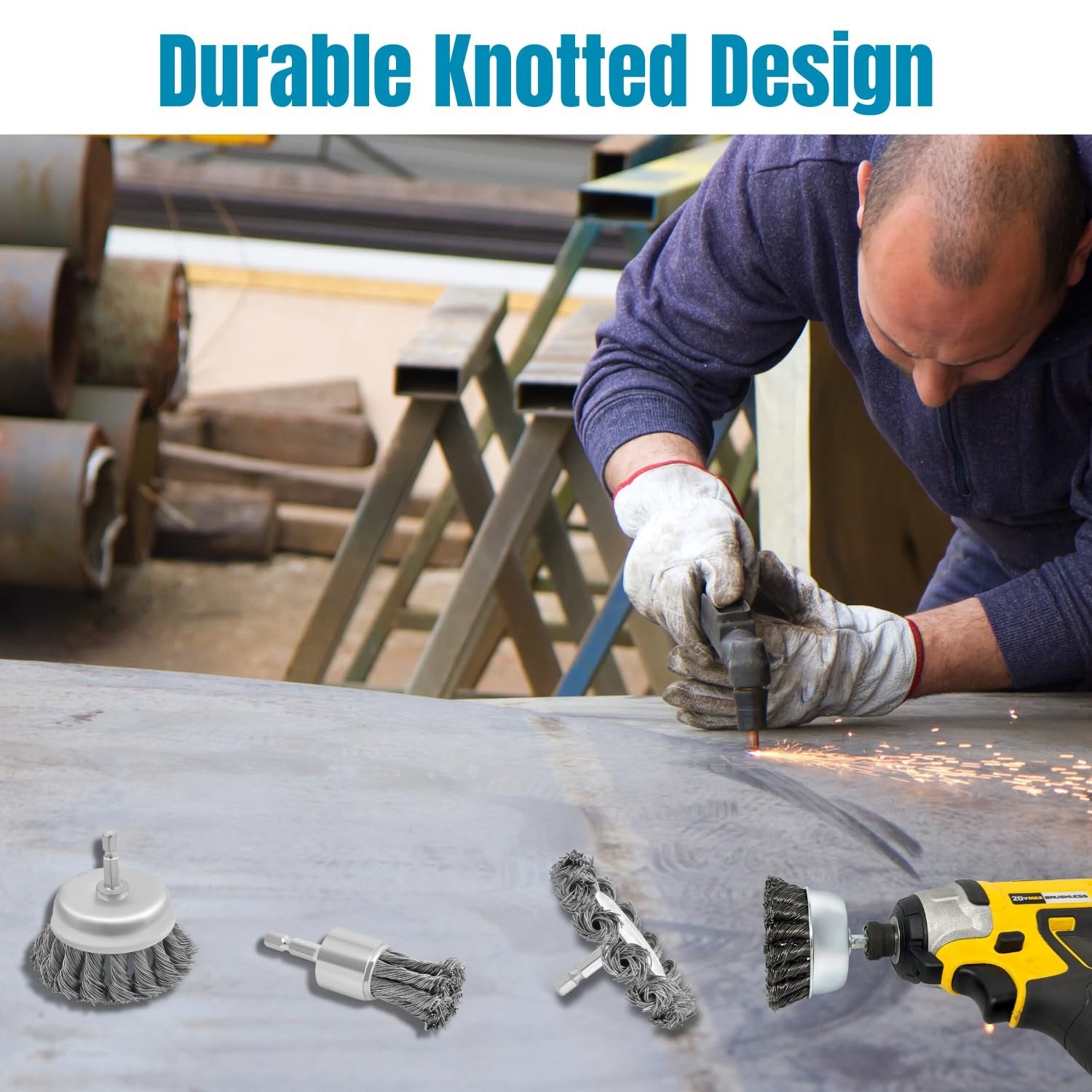 • Ultimate Versatility in the Metalworking shop: The knotted wire bristles are ideal for removing rust, paint, and other debris from metal surfaces. Cleaning up welds, Deburring cut edges tailored for technicians, metalworkers, and fabricators who require durable, long-life abrasives for frequent use in demanding work environments