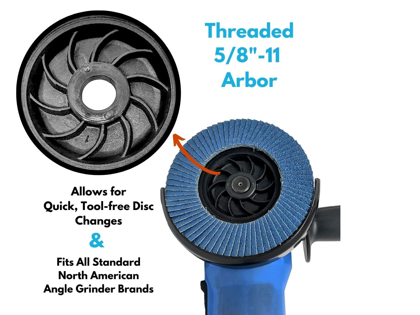 - Changements de disque faciles, rapides et sans outil ; Grâce à l'arbre fileté 5/8-11" intégré sur chaque disque, il s'enfilera et se retirera facilement de votre meuleuse d'angle. Le meilleur, c'est que la rotation normale de la meuleuse maintiendra le disque serré !