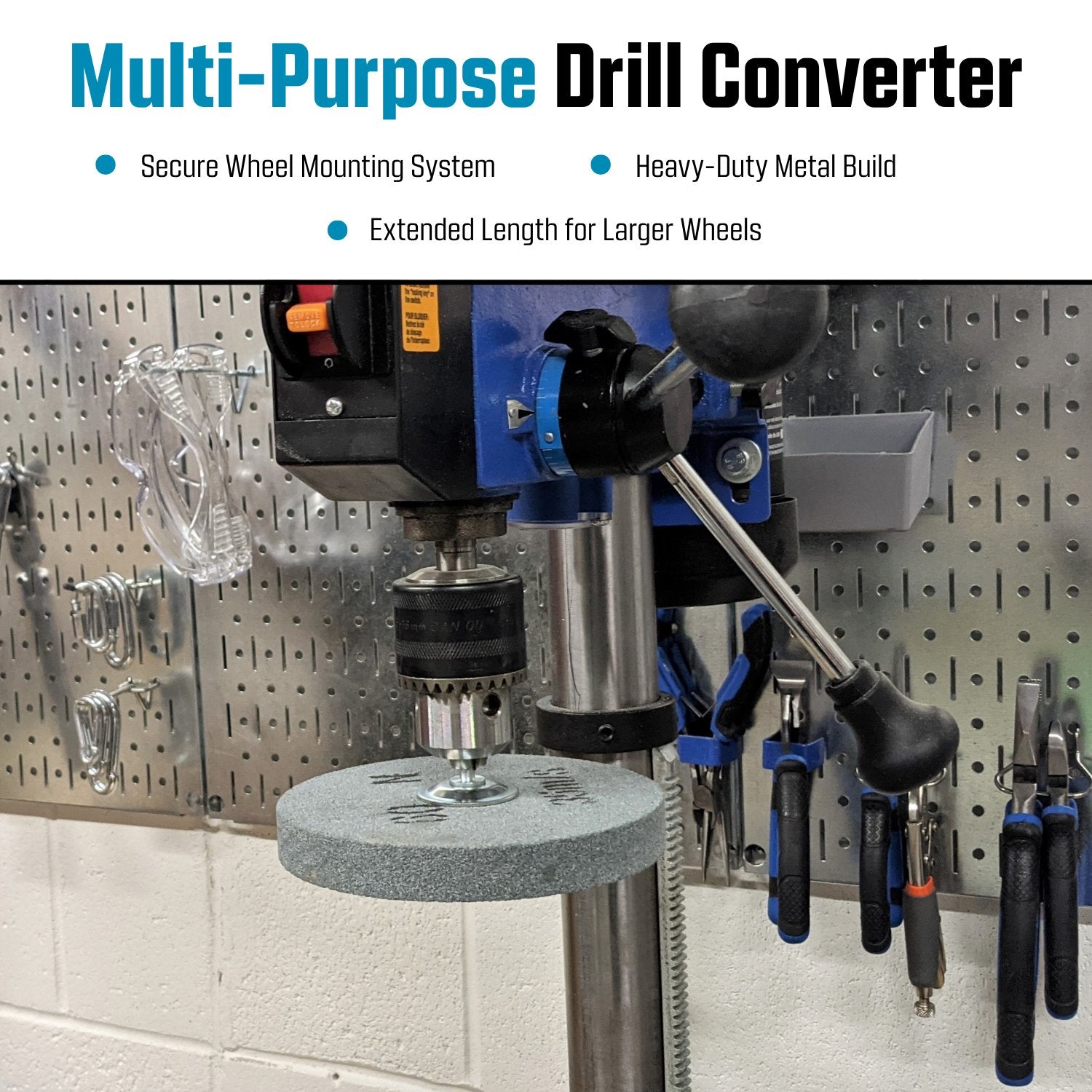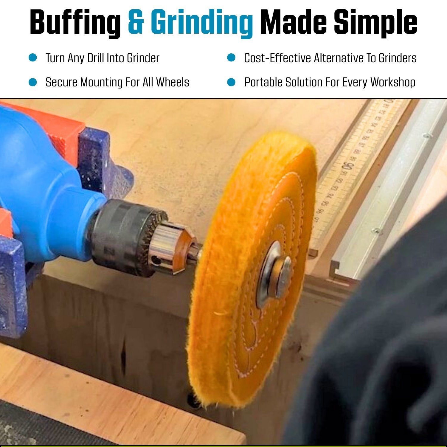 A conventional grinder or buffing machine, can sometimes be a little too powerful, runs at a high RPM and not very convenient to use. This arbor adapter solution allows for more versatility in your shop, especially if you need a slower and cooler operation speeds, or you simply prefer to use a cordless or electric drill for convenience or a drill press as a stationary option.